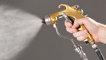 pistol de pulverizare este ținut de palmă, degetul mare, degetul mic și inel. Degetele mijlociu și arătător sunt folosite pentru a apăsa trăgaciul. Unii pictori lucrează pentru perioade lungi de timp, schimbând modul în care este ținut pistolul de la un moment la altul. Uneori folosesc doar degetul mare, palma și migăl, iar uneori, degetul inelar este folosit pentru a ține pistolul. Degetele mijlociu și arătător sunt folosite pentru a apăsa trăgaciul. Acest lucru ameliorează oboseala și îmbunătățește eficiența muncii.